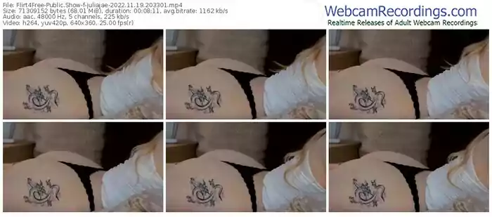 There are a total of 3,786 recordings (1,728 hours) of juliajae from Flirt4Free and MV_Live available below.