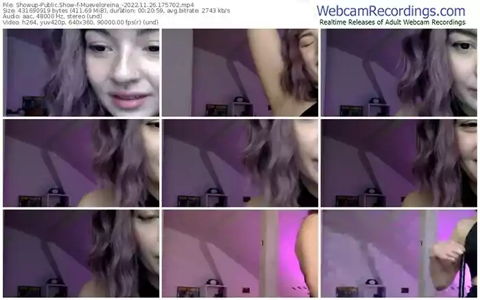 There are a total of 83 recordings (18 hours) of Mueveloreina_ from Showup available below.