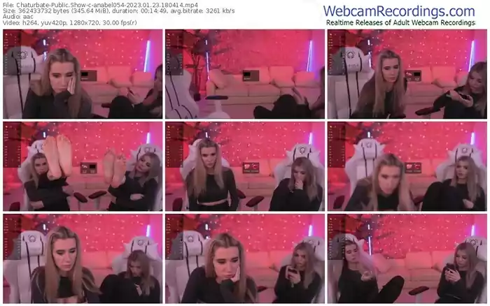 There are a total of 9,021 recordings (8,130 hours) of anabel054 from Chaturbate and Dreamcam available below.