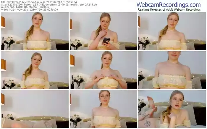 There are a total of 3,505 recordings (1,591 hours) of juliajae from Flirt4Free and MV_Live available below.