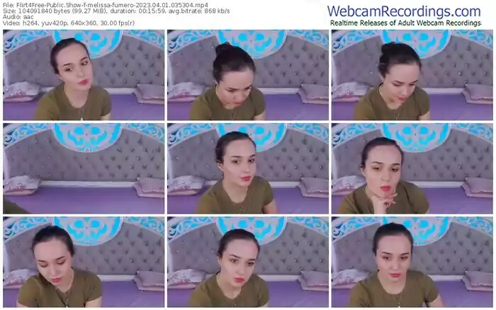 There are a total of 2,454 recordings (1,062 hours) of melissa-fumero from Flirt4Free available below.