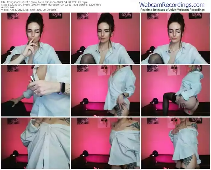 There are a total of 3 recordings (2 hours) of xxadrihanna from Bongacams available below.