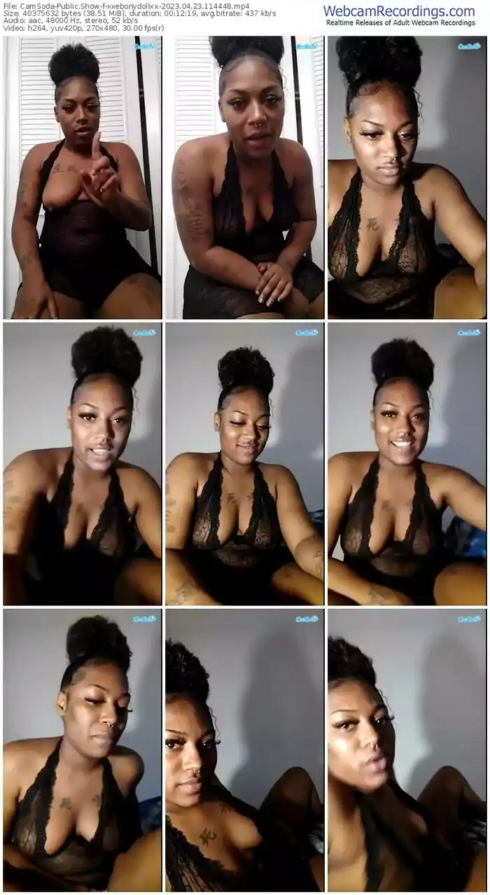 There are a total of 2 recordings (2 hours) of xxebonydollxx from CamSoda and Stripchat available below.