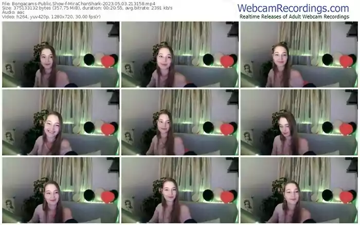 There are a total of 19 recordings (10 hours) of MiraChanShark from Bongacams available below.