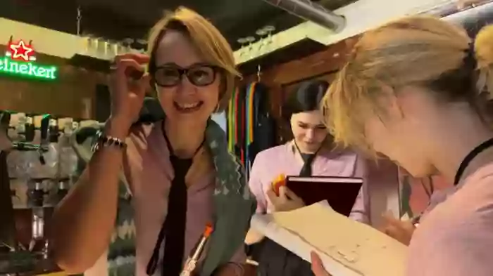 She is interested in everybody. She speaks English.