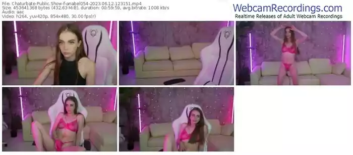 There are a total of 8,982 recordings (8,096 hours) of anabel054 from Chaturbate and Dreamcam available below.