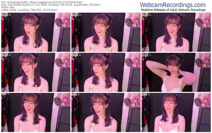 There are a total of 6 recordings (2 hours) of sagejosie from Streamate available below.