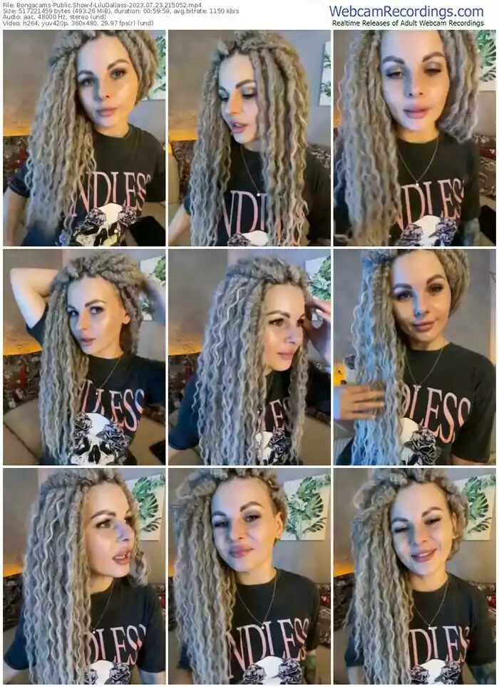There are a total of 4 recordings (2 hours) of LiluDallass from Bongacams, Stripchat, CamSoda, and Dreamcam available below.