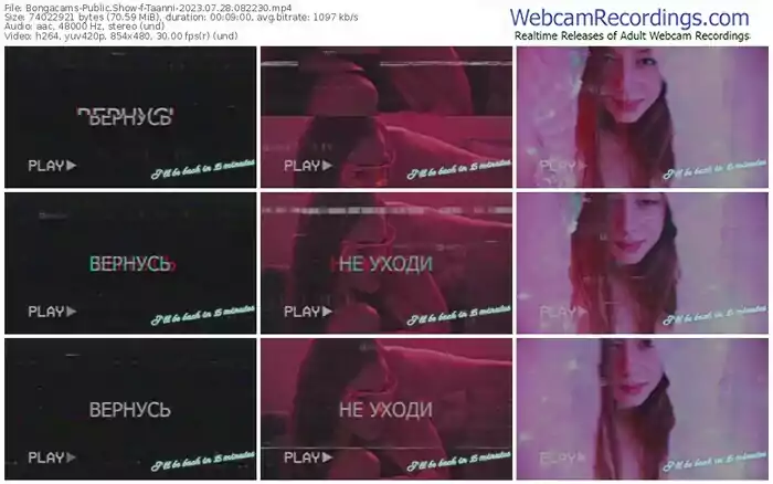 There are a total of 5,816 recordings (3,609 hours) of Taanni from Bongacams available below.
