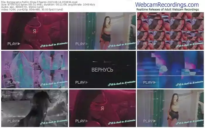 There are a total of 5,816 recordings (3,609 hours) of Taanni from Bongacams available below.