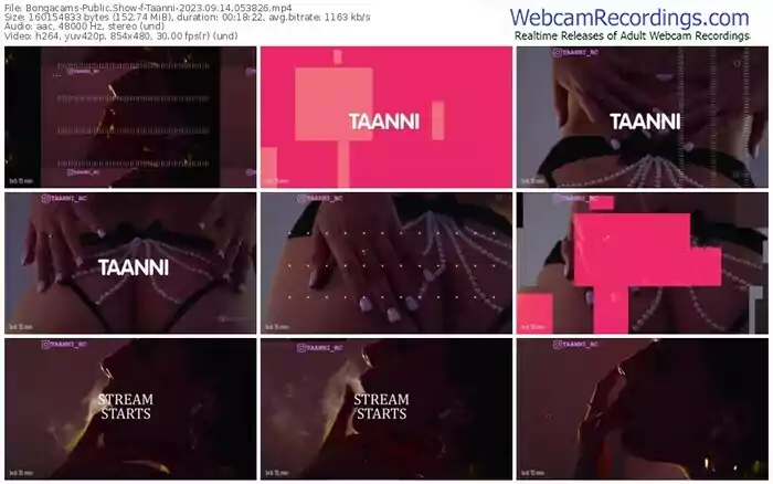 There are a total of 5,819 recordings (3,610 hours) of Taanni from Bongacams available below.