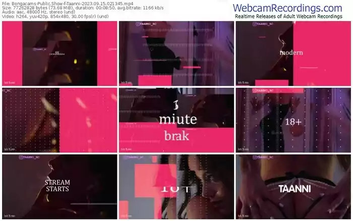 There are a total of 5,819 recordings (3,610 hours) of Taanni from Bongacams available below.