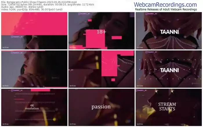 There are a total of 5,820 recordings (3,611 hours) of Taanni from Bongacams available below.
