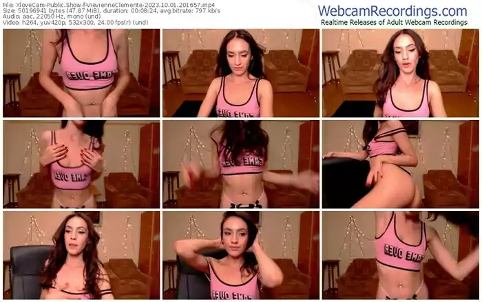 There are a total of 3,424 recordings (849 hours) of VievienneClemente from XloveCam available below.