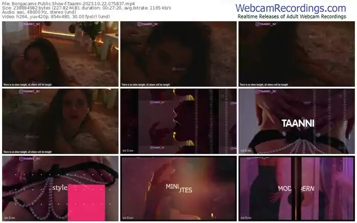 There are a total of 5,819 recordings (3,610 hours) of Taanni from Bongacams available below.
