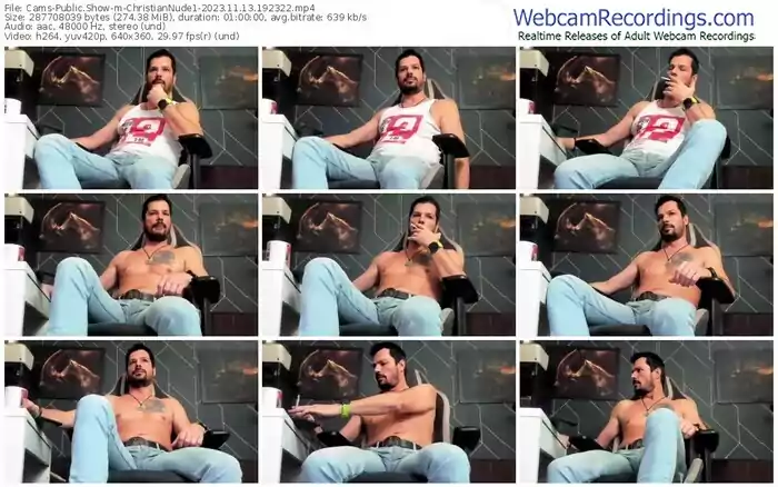 There are a total of 1,476 recordings (809 hours) of ChristianNude1 from Cams available below.