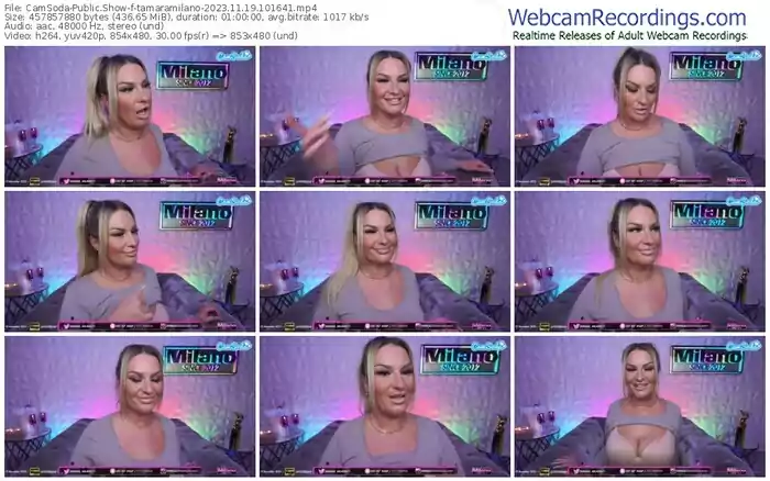 There are a total of 1,020 recordings (755 hours) of tamaramilano from CamSoda, MFC, Chaturbate, and Bongacams available below.
