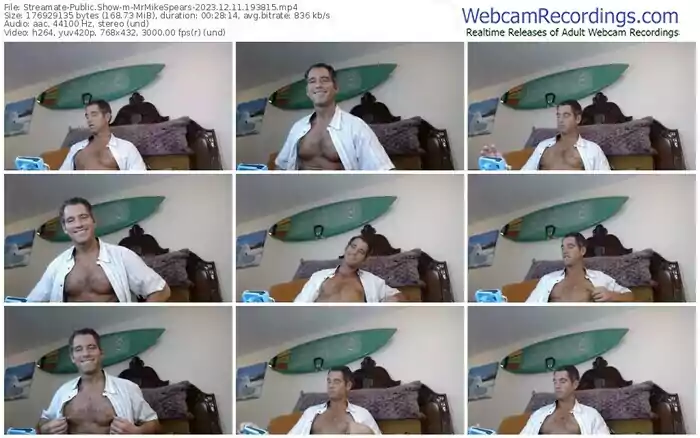 There are a total of 422 recordings (110 hours) of MrMikeSpears from Streamate available below.