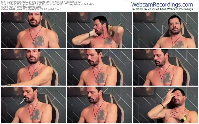 There are a total of 1,476 recordings (809 hours) of ChristianNude1 from Cams available below.