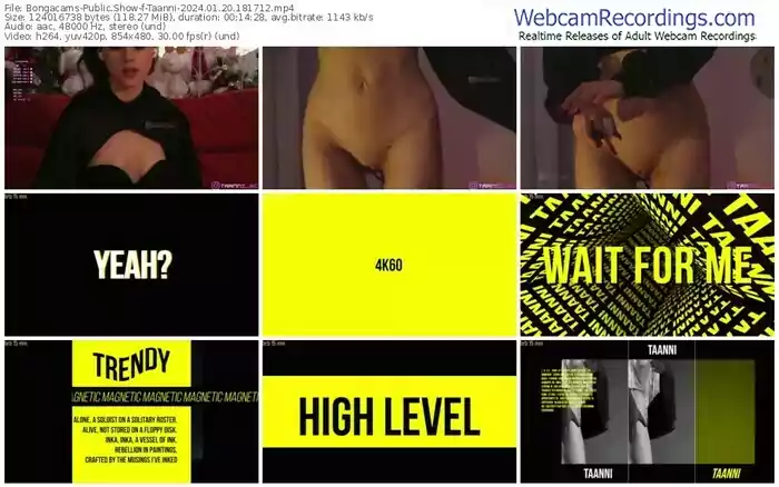 There are a total of 5,815 recordings (3,609 hours) of Taanni from Bongacams available below.