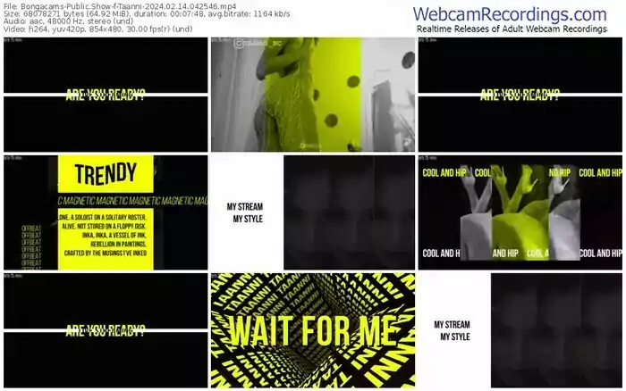 There are a total of 5,814 recordings (3,609 hours) of Taanni from Bongacams available below.