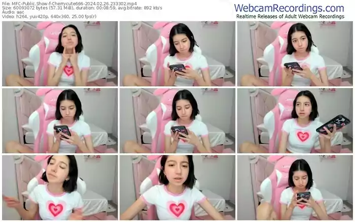 There are a total of 7,221 recordings (4,134 hours) of Cherrycute666 from MyFreeCams available below.