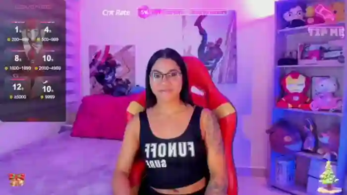 Her birthday is March 13th 2001 making her 24 years old, and the average age of models on Flirt4Free is 25—making her one of the younger models. Her height is 155cm, and her weight is 57kg. She identifies her ethnicity as hispanic. She has a shaved pubic hair, and b cup breasts on a athletic body with brown eyes and shoulder black hair.Her body art includes tattoo(s).