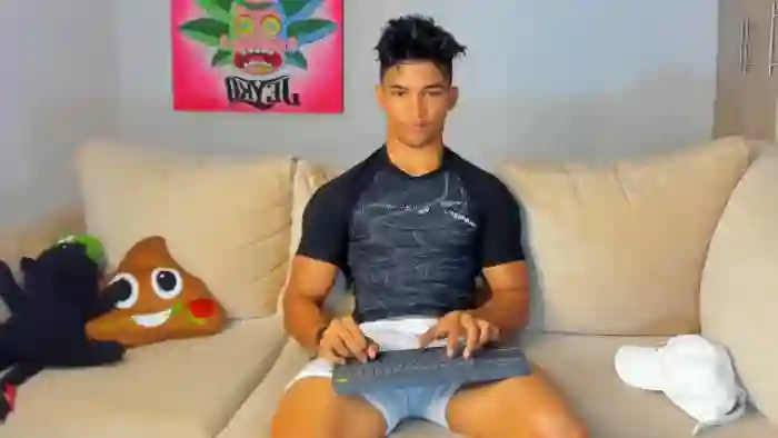 His birthday is October 30th 1999 making him 26 years old, and the average age of models on Flirt4Free is 25—making him one of the older models. His height is 175cm, and his weight is 75kg. He identifies his ethnicity as hispanic. He has a natural pubic hair, muscular body with brown eyes and short black hair.His body art includes piercings.