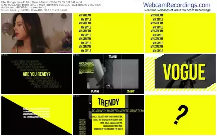 There are a total of 5,814 recordings (3,609 hours) of Taanni from Bongacams available below.