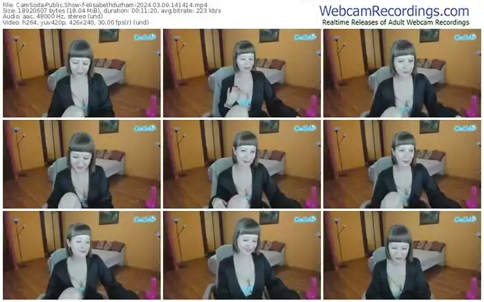 There are a total of 208 recordings (91 hours) of elisabethdurham from CamSoda available below.