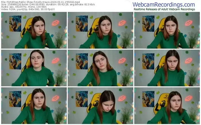 There are a total of 1,093 recordings (543 hours) of molly-travis from Flirt4Free available below.