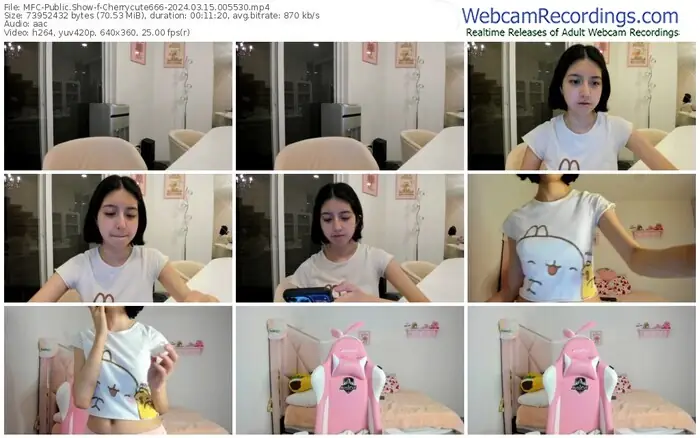 There are a total of 7,221 recordings (4,134 hours) of Cherrycute666 from MyFreeCams available below.