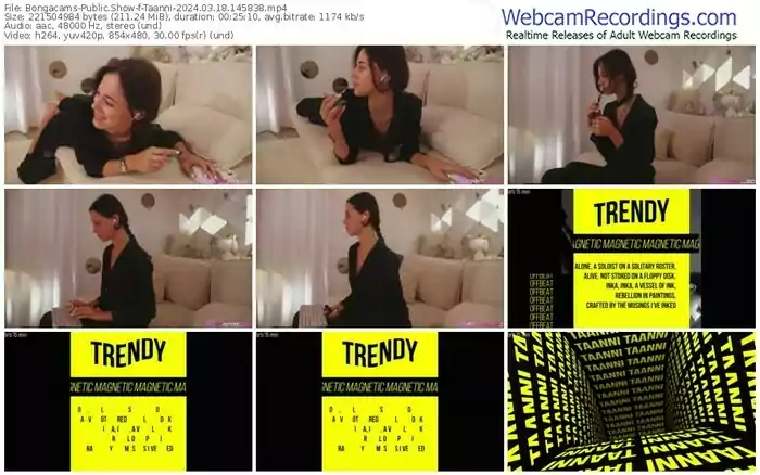 There are a total of 5,814 recordings (3,609 hours) of Taanni from Bongacams available below.
