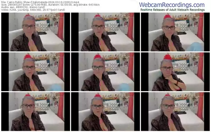 There are a total of 1,217 recordings (725 hours) of SalomeJade from Cams available below.
