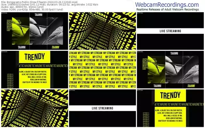 There are a total of 5,814 recordings (3,609 hours) of Taanni from Bongacams available below.