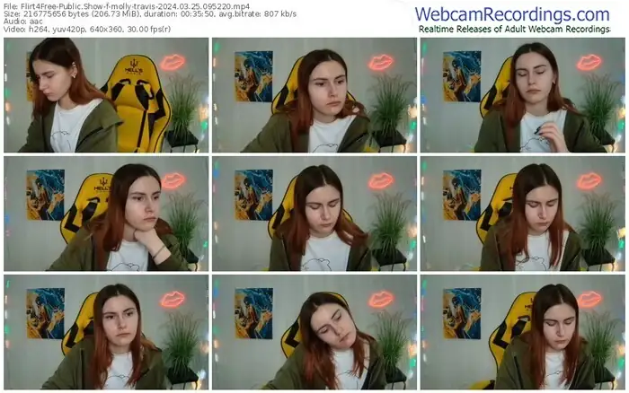 There are a total of 1,093 recordings (543 hours) of molly-travis from Flirt4Free available below.