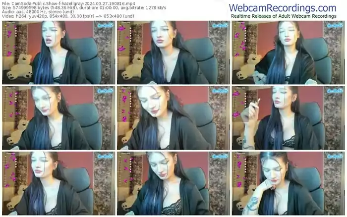 There are a total of 260 recordings (187 hours) of hazellgray from CamSoda, MFC, Bongacams, Stripchat, and Chaturbate available below.