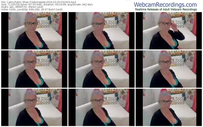 There are a total of 1,217 recordings (725 hours) of SalomeJade from Cams available below.