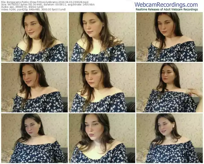 There are a total of 18 recordings (3 hours) of MissLilyAbrams from Bongacams available below.