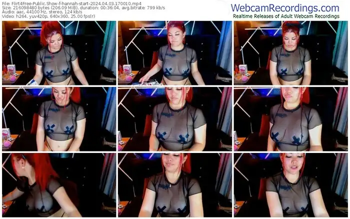 There are a total of 78 recordings (43 hours) of hannah-start from Flirt4Free available below.