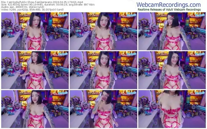There are a total of 935 recordings (744 hours) of ambarevans from CamSoda, MFC, Bongacams, and Stripchat available below.