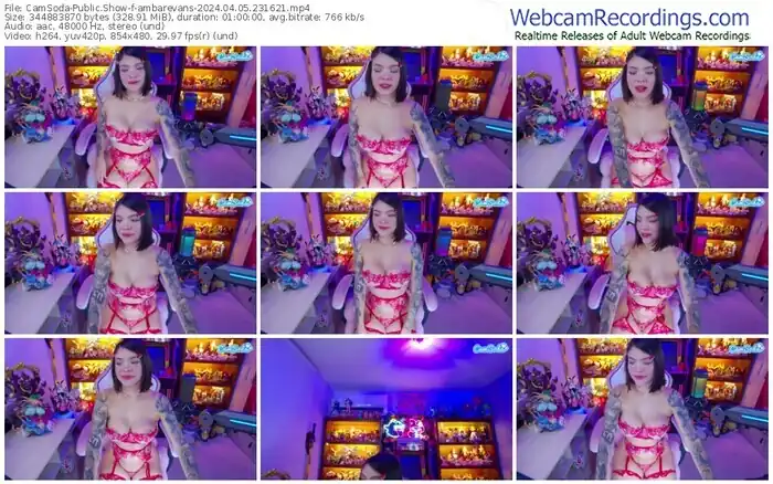 There are a total of 935 recordings (744 hours) of ambarevans from CamSoda, MFC, Bongacams, and Stripchat available below.