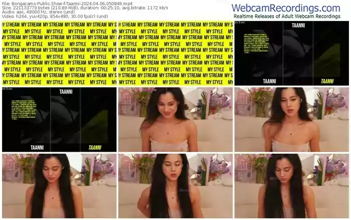 There are a total of 5,814 recordings (3,609 hours) of Taanni from Bongacams available below.