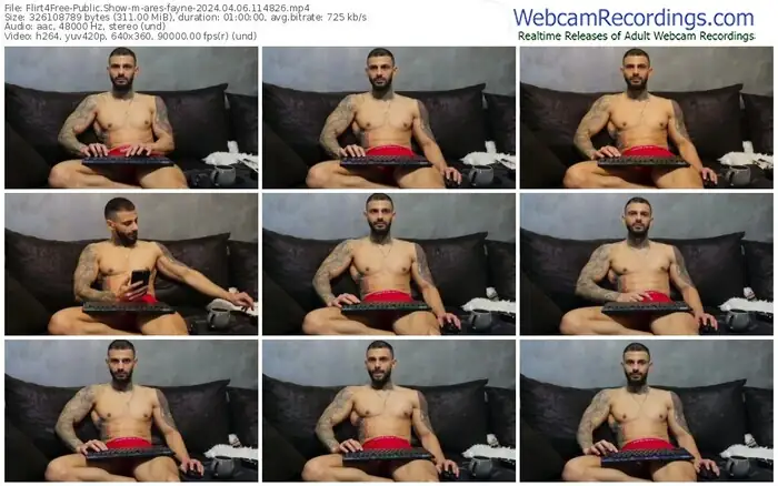 There are a total of 32 recordings (22 hours) of ares-fayne from Flirt4Free available below.