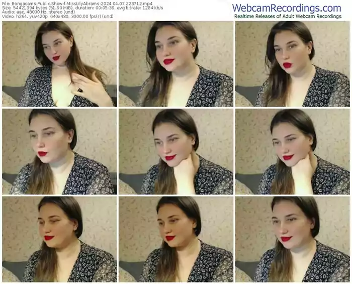 There are a total of 18 recordings (3 hours) of MissLilyAbrams from Bongacams available below.