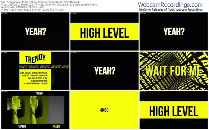 There are a total of 5,814 recordings (3,609 hours) of Taanni from Bongacams available below.