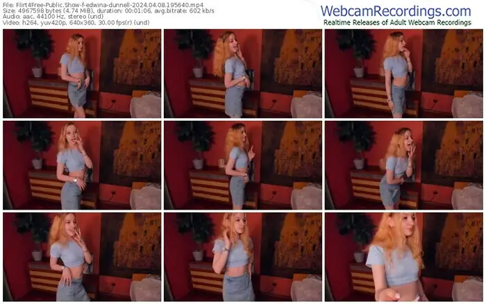 There are a total of 665 recordings (431 hours) of edwina-dunnell from Flirt4Free available below.