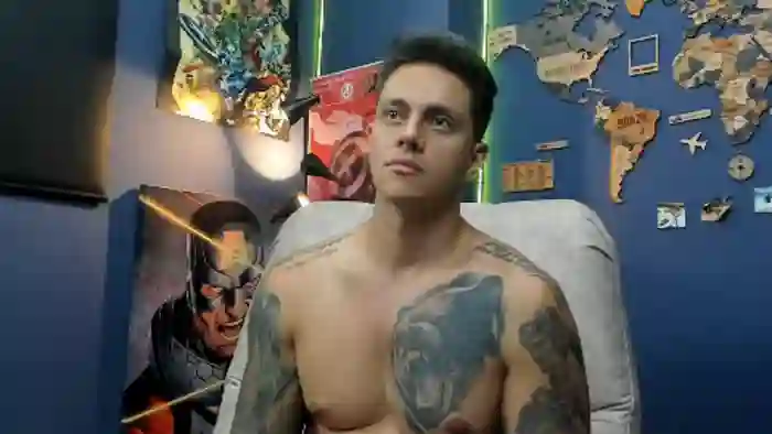His birthday is February 14th 1994 making him 31 years old, and the average age of models on Flirt4Free is 25—making him one of the older models. His height is 185cm, and his weight is 85kg. He identifies his ethnicity as hispanic. He has a trimmed pubic hair, athletic body with black eyes and short black hair.His body art includes tattoo(s).