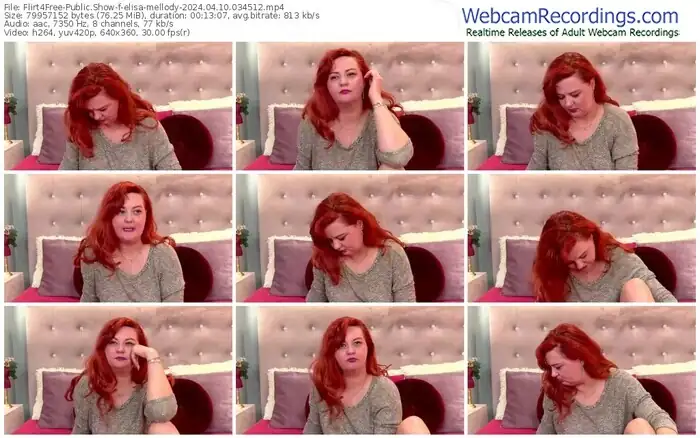 There are a total of 158 recordings (77 hours) of elisa-mellody from Flirt4Free available below.