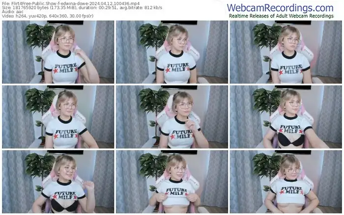 There are a total of 153 recordings (73 hours) of edwina-dowe from Flirt4Free available below.